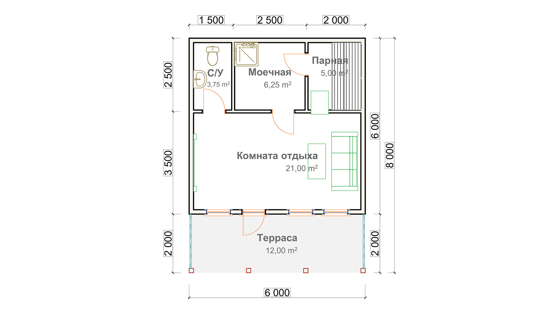 Строительство бани 6x8 м / Построим за 14-21 день / Проект бани